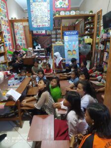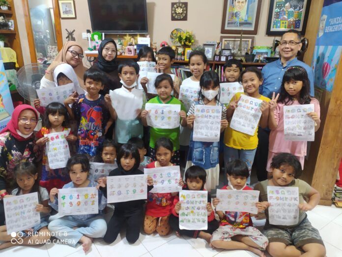 SHNet,Jakarta-Belajar bahasa asing ternyata sangat menyenangkan. Meski baru tahap pengenalan, tetapi sekitar 25 anak-anak usia SD kelas 1-6 itu antusias. Bahasa asing yang diperkenalkan adalah Bahasa Prancis. Dua mahasiswa tingkat akhir dari Prodi Pendidikan Bahasa Prancis Universitas Negeri Jakarta (UNJ) yakni Fatma dan Dita yang memberi materi dasar Bahasa Prancis di Taman Bacaan Bukit Duri Bercerita (TBM) di Bukit Duri Tanjakan III, Tebet, Jakarta Selatan, Selasa (2/8/2022)