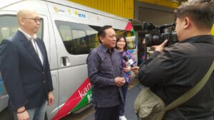 Direktur Utama Indosiar dan Direktur Grup Surya Citra Media (SCM), Komjen Pol. (Purn.) H. Imam Sudjarwo saat diwawancarai di acara Emtek Career & Education Festival 2023 di Emtek City, Rabu (30/08/2023) di damping Direktur ATVI, Dr.Melitina Tecoalu (kakan) dan VP Group HR Emtek, Pieter Andrian (kiri)