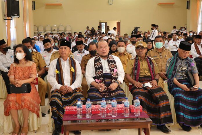 LaNyalla hadir bersama Anggota DPD RI asal NTT Hilda Manefa, Asyera Wundalero, Angelius Wake Kako, Senator Sulsel Andi Muh Ihsan dan Senator Maluku Utara Matheus Stefi Pasimanjaku serta Staf Khusus Ketua DPD RI Sefdin Syaifudin, Kepala Biro Pimpinan DPD RI Sanherif Hutagaol dan Staf Ahli Ketua DPD RI Baso Juherman.