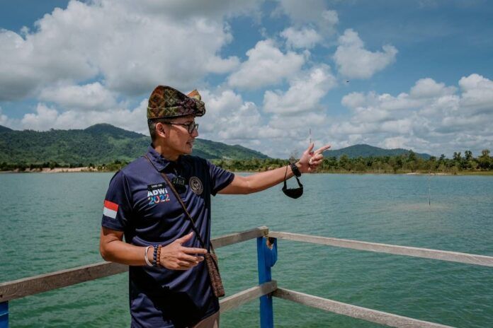 SHNet, Bangka Tengah – Menteri Pariwisata dan Ekonomi Kreatif/Kepala Badan Pariwisata dan Ekonomi Kreatif (Menparekraf/Kabaparekraf) Sandiaga Salahuddin Uno mengapresiasi kreativitas masyarakat Desa Wisata Perlang di Kabupaten Bangka Tengah, Bangka Belitung, dalam memanfaatkan bekas galian tambang timah di desanya menjadi desa wisata.