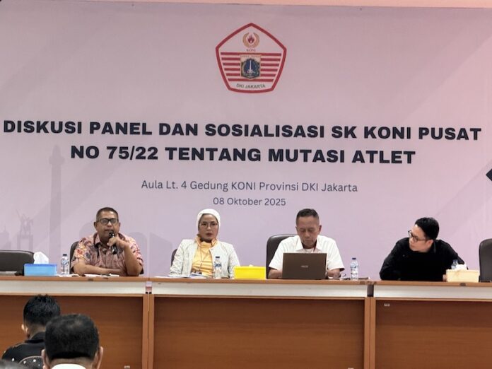 SHNet, JAKARTA – Ditengah maraknya perpindahan atlet dari provinsi ke provinsi, KONI DKI Jakarta pun menggelar diskusi panel dan sosialisasi tentang Mutasi Atlet. Ya, Diskusi ini membedah soal surat keputusan (SK) KONI Pusat No 75 Tahun 2022 tentang Mutasi Atlet.