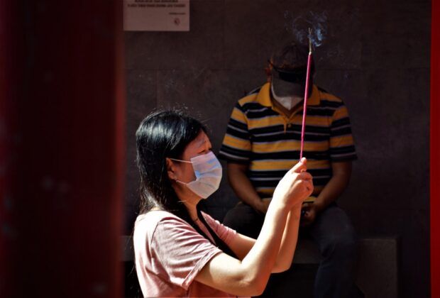 Perayaan Tahun Baru Imlek 2022 masih diberlakukan pembatasan dan mengikuti protokol kesehatan di Vihara Dharma Jaya Toasebio, Glodok, Jakarta Barat, Selasa (1/2/2022). Meskipun tidak semeriah perayaan tahun sebelum Covid 19 namun tidak menghalangi pelaksanaan persembahyangan umat dengan khusyuk.(SHnet/MuniMoon)