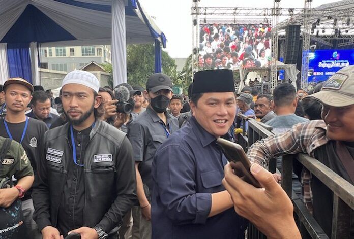 SHNet, BEKASI– Menteri BUMN Erick Thohir hadir pada Doa Bersama & Konser Amal Salam Satu Jiwa di Gladiator Arena, Bekasi, Minggu (8/1/2022) sore hingga malam hari.