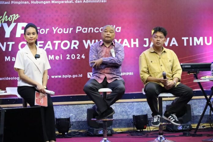 Malang-Badan Pembinaan Ideologi Pancasila (BPIP) menyelenggarakan Workshop bertajuk ‘FYP: For Your Pancasila Penguatan Content Creator Wilayah Jawa Timur’ di Dome Theater Universitas Muhammadiyah Malang, Jawa Timur, Selasa (06/05/2024).