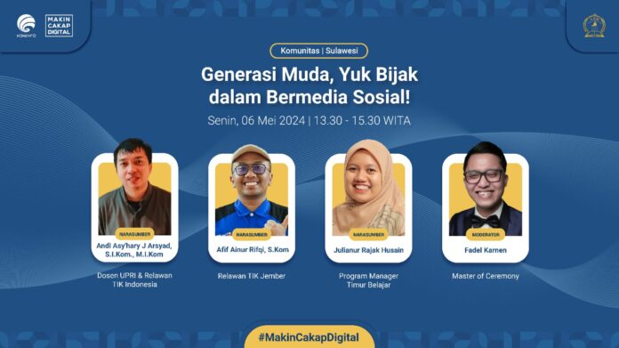 SHNet, Sulawesi— Kementerian Komunikasi dan Informatika (Kemenkominfo) menyelenggarakan webinar mengenai penguatan keterampilan digital masyarakat Indonesia bernama #MakinCakapDigital 2024, Senin (06/05/2024) di Kabupaten Maros, Sulawesi Selatan.
