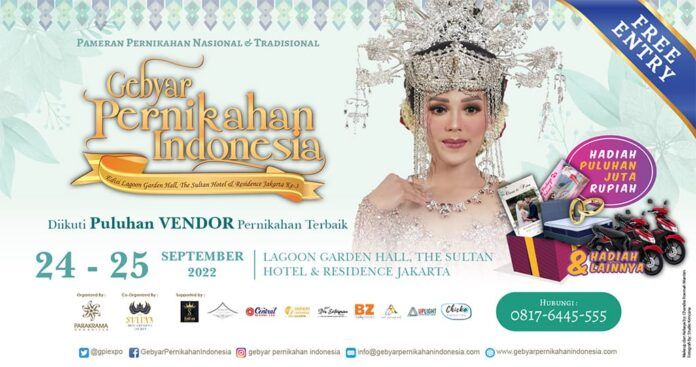 SHNet, Jakarta – Pameran Gebyar Pernikahan Indonesia (GPI) Edisi Lagoon Garden Hall kembali digelar di di The sultan Hotel & Residence Jakarta pada 24-25 September 2022 mendatang.