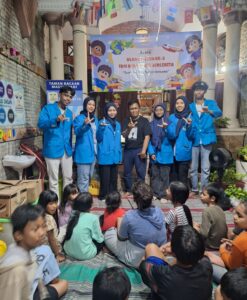 SHNet,Jakarta-Sekelompok mahasiswa Jurusan Ilmu perpustakaan, UIN Syarif Hidayatullah Jakarta, memberi edukasi kepada anak-anak Taman Bacaan Masyarakat (TBM) Bukit Duri Bercerita di kawasan Bukit Duri Tanjakan, Tebet, Jakarta Selatan, Sabtu malam (21/12/2024). Materi edukasi ini terkait dengan rambu-rambu lalu lintas.