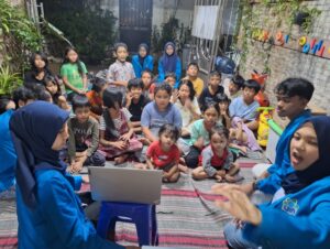 Siti Ayesha Maharani Syam, juga sangat senang bisa melakukan project UAS ini di TBM Bukit Duri Bercerita. “Rasanya sangat beruntung bisa mendapatkan tempat project UAS di TBM ini. Anak-anak yang sangat responsif dan ceria, meski berisik dan banyak bercandanya, tapi dapat memahami materi yang diberikan dengan baik,”katanya.