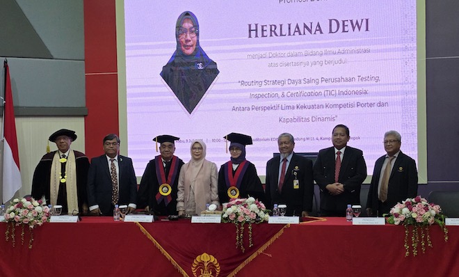 “Saya ucapkan selamat kepada Doktor Herliana Dewi atas prestasinya. Disertasi ini bisa dipakai sebagai rujukan ilmiah maupun sebagai policy brief bagi pengelolaan BUMN dan bisnis TIC, terutama agar pimpinan BUMN bisa melihat dinamika bisnis TIC di Indonesia. Semoga setelah membaca disertasi ini perusahaan-perusahaan BUMN yang sedang bermasalah bisa di-recovery,” kata Prof. Dr. Martani Huseini, MBA selaku promotor.