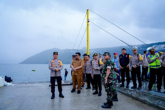 SHNet, SAMOSIR – Kapolda Sumut, Irjen Pol Agung Setya Imam Effendi, beserta rombongan mengecek kesiapan pengamanan Event Aquabike World Championship 2023 di Water Front City di Kecamatan Pangururan, Kabupaten Samosir, Selasa (21/11).
