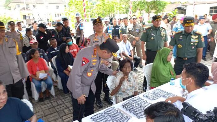 SHNet, Maluku – Kapolri Jenderal Polisi Drs. Listyo Sigit Prabowo dan Panglima TNI Jenderal Agus Subiyanto memberikan bantuan kesehatan serta bantuan sosial kepada masyarakat di Maluku. Bantuan tersebut diberikan dalam rangka mendekatkan diri dengan masyarakat dan mengajak terwujudnya Pemilu 2024 aman dan damai.