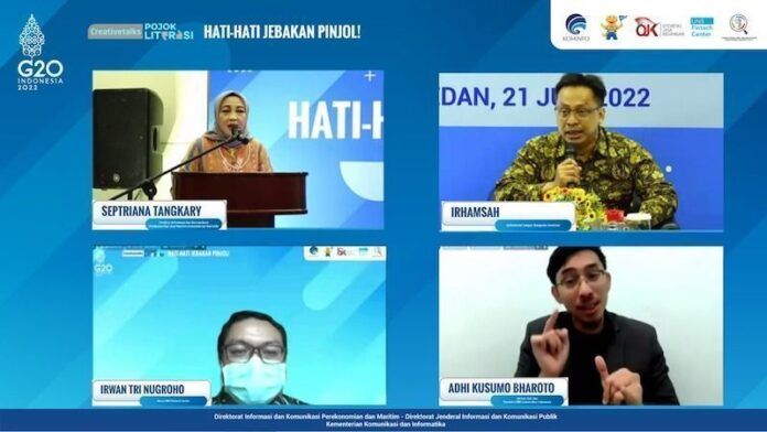 Hal itu disampaikan Direktur Informasi dan Komunikasi Perekonomian dan Maritim, Kementerian Kominfo, Septriana Tangkary, dalam sambutannya pada acara Creativetalks Pojok Literasi “Hati-Hati Jebakan Pinjol!”, di Medan (21/07/2022).