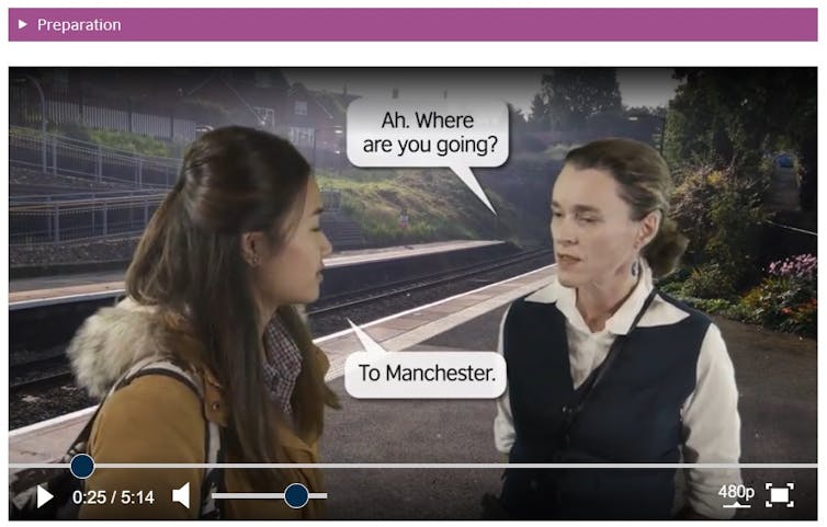 Contohnya, murid belajar percakapan membeli tiket kereta bawah tanah di London atau memesan makanan di restoran cepat saji di New York.