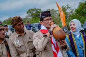 SHNet, Labuan Bajo – Menteri Pariwisata dan Ekonomi Kreatif/Kepala Badan Pariwisata dan Ekonomi Kreatif (Menparekraf/Kabaparekraf) Sandiaga Salahuddin Uno melakukan peletakan batu pertama (ground breaking) pembangunan EIGER Hill Flagship Store Parapuar sekaligus EIGER Coffee di Labuan Bajo, Nusa Tenggara Timur (NTT).