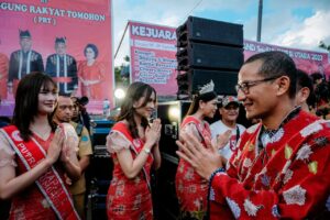 “Kegiatan ini juga akan memperkuat tiga pembangunan yaitu ekonomi, masyarakat, dan lingkungan. TIFF 2023 yang masuk 110 Kharisma Event Nusantara ini juga diharapkan dapat menggairahkan pariwisata,” kata Wali Kota Tomohon, Carrol. (Stevani Elisabeth)