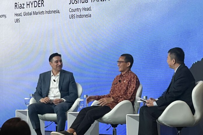 Menparekraf Sandiaga saat menjadi narasumber dalam sesi diskusi UBS OneASEAN Summit 2024 dengan tema The Next Chapter of Indonesia Leadership yang berlangsung di Jasmine Ballroom, Marina Bay Sands Convention Centre, Singapura, kemarin mengatakan saat ini keadaan ekonomi dan politik di Indonesia pasca pemilu kian kondusif dan progresif.