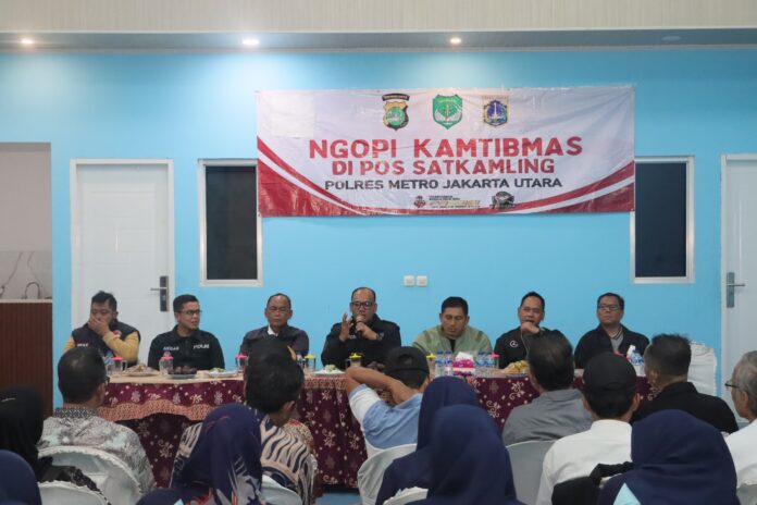 SHNet, JAKARTA – Kapolres Metro Jakarta Utara Kombes Pol Gidion Arif Setyawan bersama , Asisten pemerintahan Kota Administrasi Jakarta Utara Iyan Sofian Hadi, Dandim 0502/JU Letkol Inf. Dony Gredinand ngopi bersama pengurus & warga di RW 06, Tugu Utara, Koja, Kamis (19/9) malam.