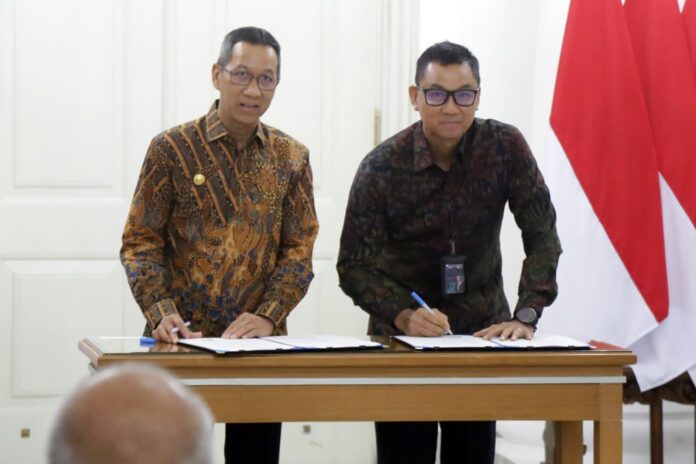 SHNet, Jakarta – PT PLN (Persero) dengan Pemerintah Provinsi DKI Jakarta (Pemprov DKI) menandatangani Kesepakatan Bersama (KB) untuk mengolah sampah kota DKI Jakarta menjadi Bahan Bakar Jumputan Padat (BBJP) di Balaikota DKI Jakarta, Kamis (8/6). Lewat kerja sama ini persoalan sampah di Jakarta di harapkan bisa berkurang dan PLN mendapatkan kepastian pasokan biomassa untuk teknologi co-firing di Pembangkit Listrik Tenaga Uap (PLTU).