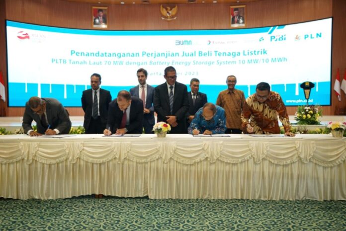 SHNet, Jakarta – PT PLN (Persero) menggandeng Total Eren S.A., PT Adaro Power dan PT Pembangkitan Jawa Bali Investasi (PJBI), dalam pembangunan proyek Pembangkit Listrik Tenaga Bayu (PLTB) berkapasitas 70 MW di Tanah Laut, Kalimantan Selatan. Pembangkit energi baru dan terbarukan (EBT) ini merupakan PLTB pertama di Indonesia yang dilengkapi dengan teknologi sistem penyimpanan energi baterai atau Battery Energy Storage System (BESS) sebesar 10 MWh di Tanah Laut, Kalimantan Selatan.