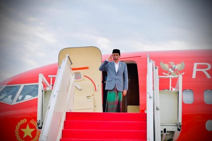 Jakarta-Presiden RI Joko Widodo (Jokowi) pada Senin (31/01/2022), bertolak menuju Provinsi Kalimantan Timur untuk melakukan kunjungan kerja. Dengan menggunakan Pesawat Kepresidenan Indonesia-1, Presiden yang mengenakan setelan jas dan peci, serta sarung bermotif hijau merah lepas landas dari Bandar Udara Internasional Soekarno-Hatta, Tangerang, Banten, sekitar pukul 07.00 WIB.