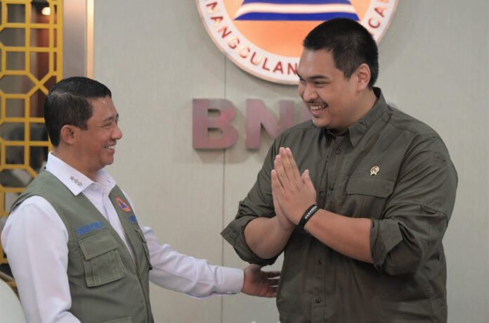 SHNet, Jakarta – Menteri Pemuda dan Olahraga Republik Indonesia (Menpora RI) Dito Ariotedjo berkunjung ke Badan Nasional Penanggulangan Bencana (BNPB), dan diterima langsung Kepala BNPB Suharyanto, di Graha BNPB, Jl Pramuka Kav 38, Jakarta Timur, Rabu (12/4) pagi.