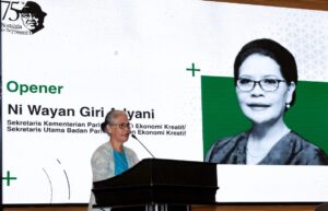 Turut mendampingi Sesmenparekraf Ni Wayan Giri Adnyani pada acara tersebut adalah Kepala Biro Komunikasi Kemenparekraf/Baparekraf, I Gusti Ayu Dewi Hendriyani. (Stevani Elisabeth)
