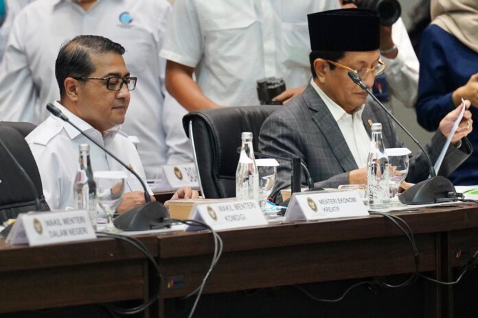Dalam rapat tersebut Menteri Ekraf didampingi Sekretaris Kementerian Ekraf/Sekretaris Utama Badan Ekraf Dessy Ruhati. Turut hadir juga Menteri Sosial Saifullah Yusuf; Menteri Usaha Mikro, Kecil, dan Menengah (UMKM) Maman Abdurrahman; Menteri Agama Nasaruddin Umar; Wakil Menteri Kependudukan dan Pembangunan Keluarga Ratu Ayu Isyana Bagoes Oka; beserta jajaran Kabinet Merah Putih lainnya. (Stevani Elisabeth)