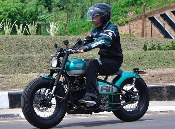 “Bapak meminta angka 76 di bawah bagian jaket sebagai tanda 76 tahun Indonesia merdeka. Dibordir di atas bahan double mesh dengan warna hijau dan hitam dan pola jaket Rabbit and Wheels yang akan cocok digunakan saat mengendarai motor custom Bapak Presiden,” ujar Irvan.