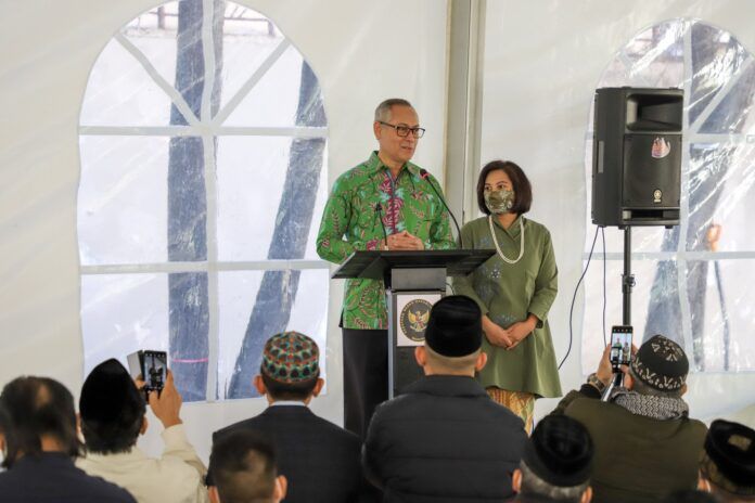 Duta Besar Luar Biasa dan Berkuasa Penuh Republik Indonesia untuk Federasi Rusia merangkap Republik Belarus, Jose Tavares didampingi Ibu Fitria Wibowo Tavares turut hadir dan menyampaikan pesan hari raya Idul Fitri dalam shalat Ied.