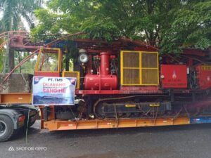 Dan nyatanya di dalamnya sudah termuat alat-alat berat  PT. TMS yang sudah dimuat di tronton. Diperkirakan kapal tersebut menunggu air pasang penuh, baru merapat kepelabuhan Ferry Pananaru untuk menurunkan alat-alat berat tersebut.